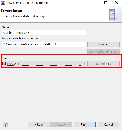 * 톰캣과 JDK를 설치하면 FINISH 를 누른다.!!