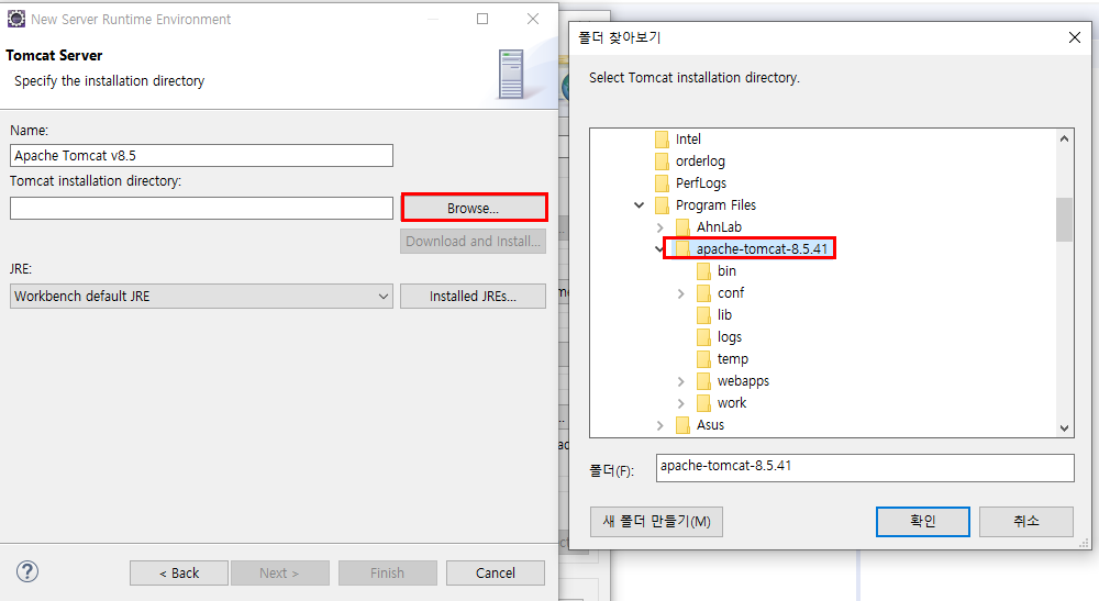 * Browe 클릭 후 apache-tomcat-8.541 선택